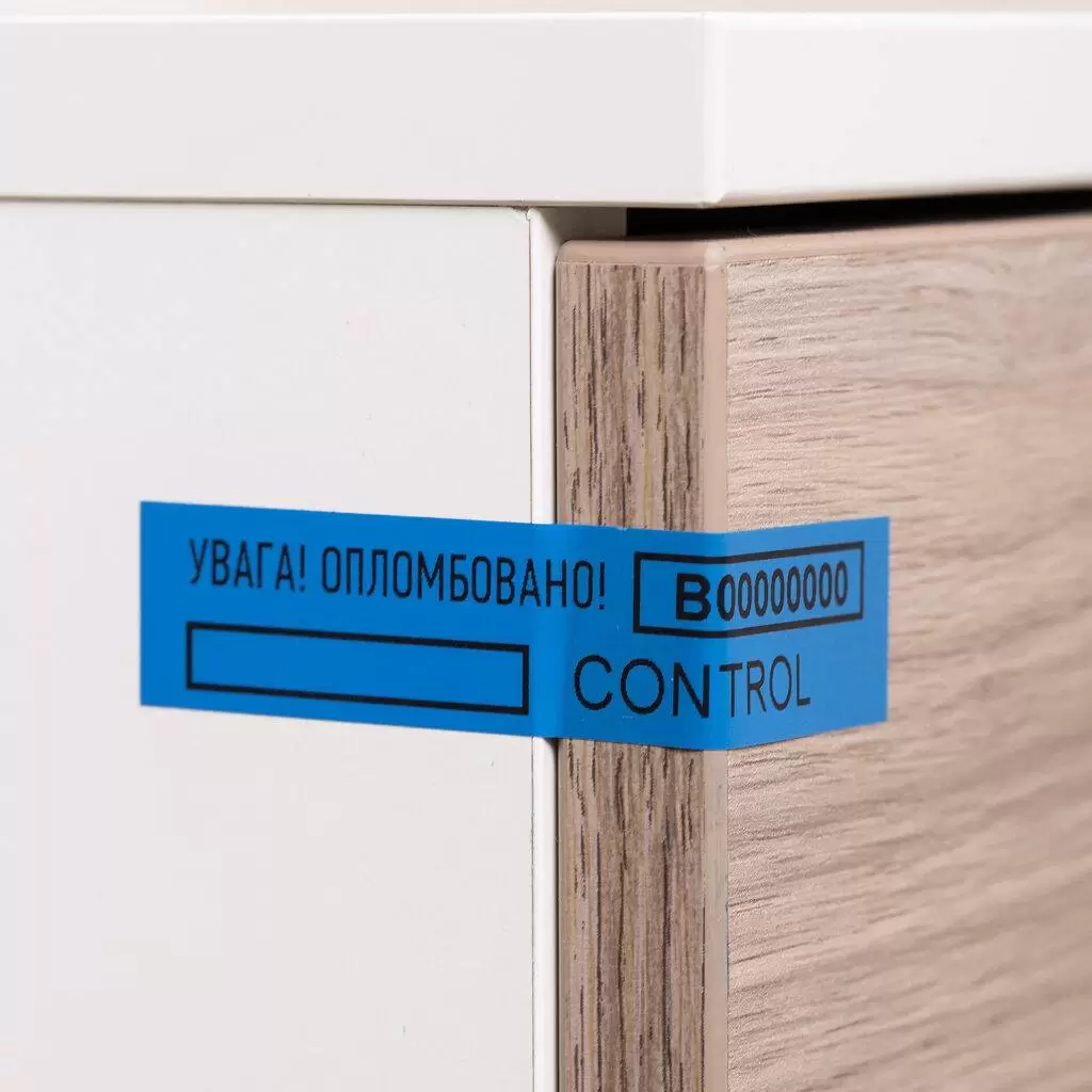 Наклейки виготовляють зі спеціально обробленого матеріалу, на який наноситься клейова речовина. Їх використовують для захисту від незаконного доступу до приміщень, контейнерів, ящиків, різноманітних датчиків та місткостей. Від підробок її захищає зносостійке маркування та прихований напис «розкрито/opened», який проявляється при спробі зняття індикатора з опломбованого об'єкта.